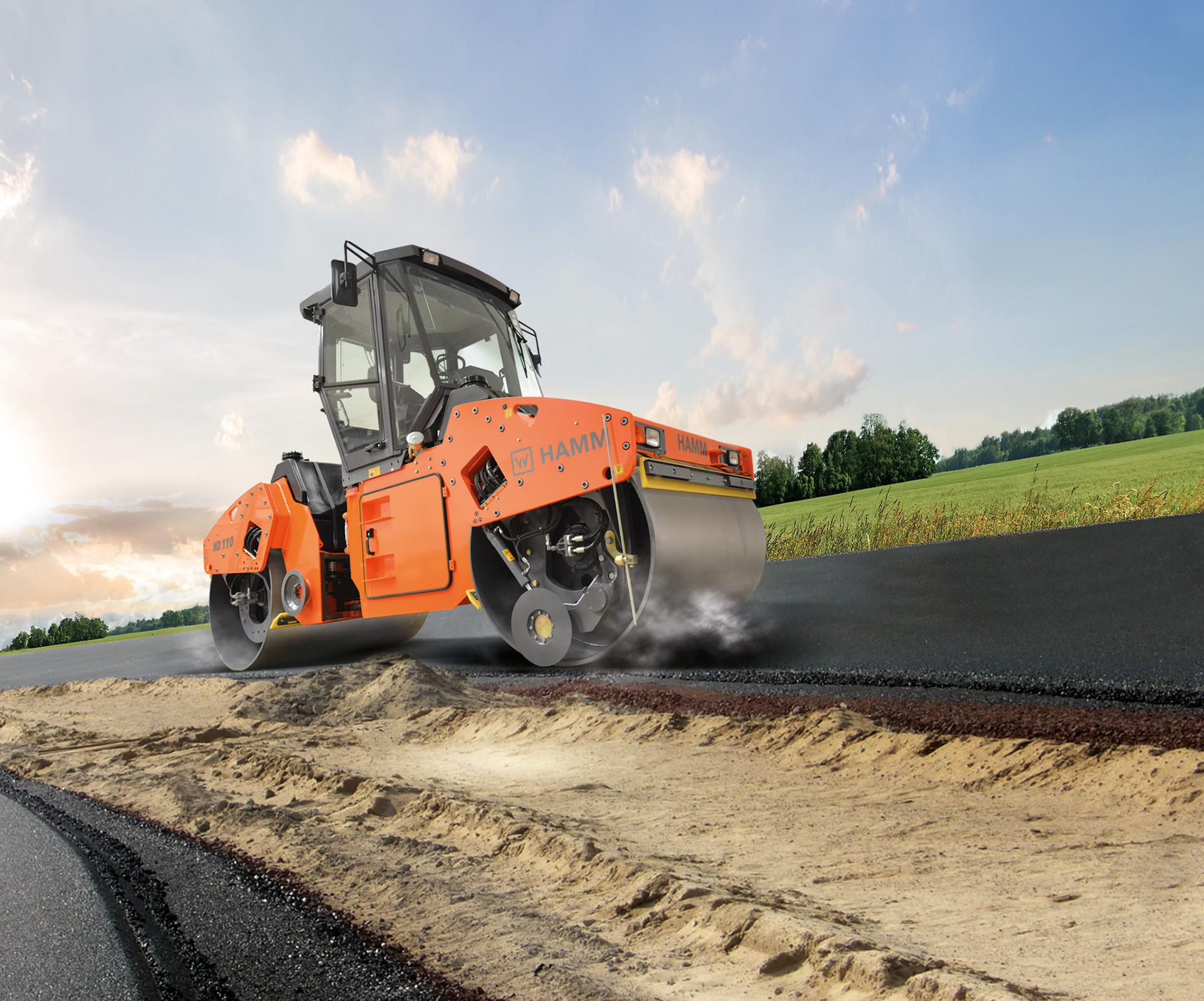 Rouleau tandem articulé à deux rouleaux, segment de 11 tonnes et largeur de travail de 1.780 mm, le HD 110 est un equipment robuste et efficace.